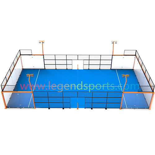 Padel courts:L 20m,W 10m.tempered glass and steel mesh cover the court,it is consists of galvanized steel structure,galvanized steel mesh,tempered glass,artificial turf and light system.